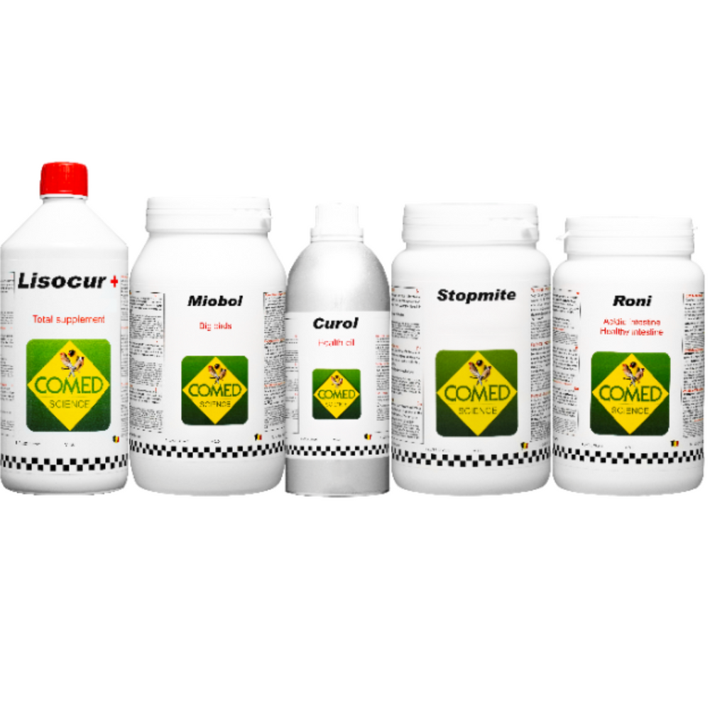 1.Lisocur+. Het is een totale aanvulling van bijna 40 aanvullende voedingsbestanddelen, nodig volgens de laatste richtlijnen der wetenschap. Daarnaast bevat het vegetale substanties die een belangrijke rol spelen in het handhaven van de natuurlijke weerstand die o.a zorgt voor de afweer tegen ziekte, het vederpikken, het kannibalisme etc.